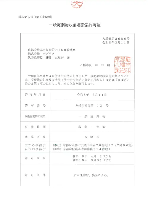 株式会社ナプラス(京都府 城陽市)は、廃棄物の適正処理はもちろん再資源化のご提案、