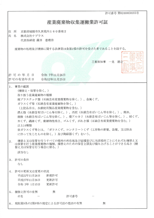 株式会社ナプラス(京都府 城陽市)は、廃棄物の適正処理はもちろん再資源化のご提案、